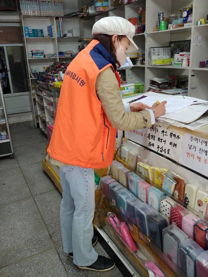 | ▲ 지도점검반이 식품안전보호구역 내 문방구에서 위생 점검을 하고 있다. (사진제공=인천 미추홀구청) |