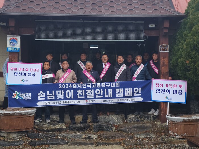 캠페인에는 합천군체육회 및 합천공공스포츠클럽, 합천군 축구협회 임원, 경제문화국장, 체육지원과 등 30여 명이 참가해 관내 식당 등 위생업소 들을 방문해 서한문과 대회일정과 응원문구가 각인된 일회용 앞치마를 제작해 전달하며 친절 응대와 청결한 서비스를 당부했다. 동시에 위생업소 대표자들의 건의사항을 청취해 성공적인 대회 진행과 앞으로 있을 다양한 전국규모 스포츠대회의 유치를 위한 의견수렴도 진행했다.