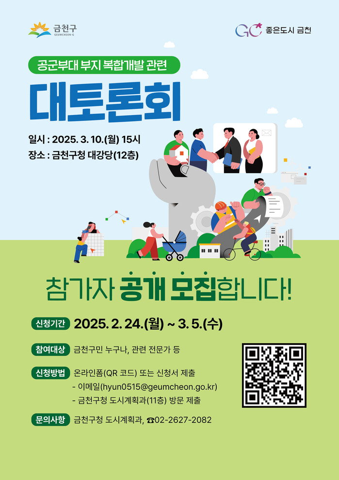 [시민일보 = 여영준 기자] 금천구(구청장 유성훈)가 공군부대 부지의 공간혁신구역 복합개발 계획 수립을 위해 오는 3월10일 오후 3시 구청 대강당에서 ‘주민 대토론회’를 개최한다.