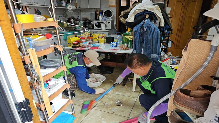 이들은 홀몸노인과 중증장애인 등 취약계층 3가구를 직접 방문해 집안 정리, 폐기물 처리, 청소 등 맞춤형 주거환경 개선 작업을 진행했다.
