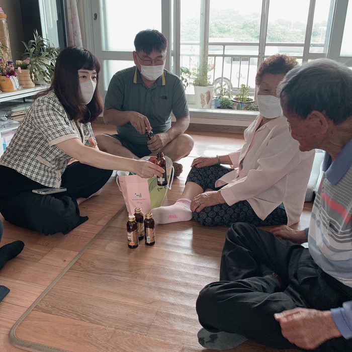 경기 동두천시 상패동 행정복지센터는 최근 통장들과 함께 지역내 남녀 최고령인 100세와 97세를 맞이하는 노인가정을 방문해 안부를 묻고 건강을 기원했다. 사진은 동 관계자와 통장들이 대상 노인가정을 방문해 대화를 나누고 있는 모습. (사진제공=동두천시청)