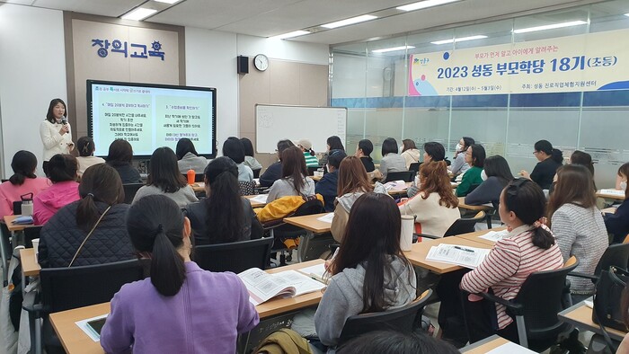 | ▲ 성동구가 9월 20일부터 10월 11일까지 초등 학부모 대상 부모학당 20기를 운영한다. 사진은 성동 부모학당 18기 운영 모습 (사진=성동구청 제공) |