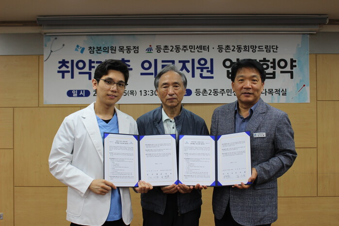 [시민일보 = 이대우 기자] 서울 강서구(구청장 진교훈) 등촌2동 주민센터는 참본의원 목동점(등촌로 142, 원장 김지호)과 저소득층의 의료비 부담을 덜어주기 위한 협약을 체결했다고 밝혔다.