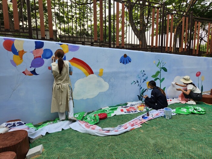 ‘미담’이란 재능 나눔으로 아름다운 자원봉사 이야기를 만들어가자는 뜻과 함께 ‘美’와 ‘담벼락’을 합친 합성어다. 이날 봉사에는 성균관대학교 미술학과 학생 등이 참여했다.