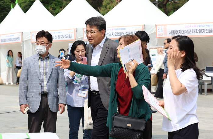 [시민일보 = 변은선 기자] 오승록 노원구청장이 최근 중계 등나무근린공원에서 열린 ‘2024년 노원구 일자리 박람회’에 참석했다.