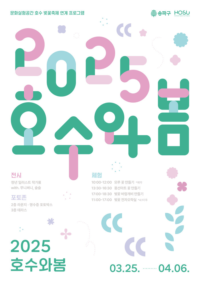 [시민일보 = 이대우 기자] 송파구(구청장 서강석)가 오는 4월6일까지 ‘문화실험공간 호수’(송파나루길 256)에서 ‘2025 호수와 봄’을 개최한다.