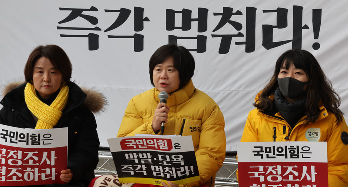 한편 예산안 처리가 늦어지면서 핼러윈 참사 국정조사 기간이 줄어드는 부분에 대해서는 “정의당을 비롯한 야3당이 국민의힘을 더 이상 기다릴 수가 없다, 45일 합의 기간 중 절반 가까이를 허비했기 때문에 14일부터 국민의힘이 국조 참여를 안 한다면 야당끼리 하겠다고 발표했다”며 “그렇다면 어제부터 국정조사를 시작하고 밀어붙였어야 했는데 오늘 예산안 처리가 진행되면 내일(16일)부터라도 당장 국정조사 소집이 돼서 증인 채택을 비롯한 국정조사 계획안이 의결이 되고 진행돼야 한다”고 주장했다.