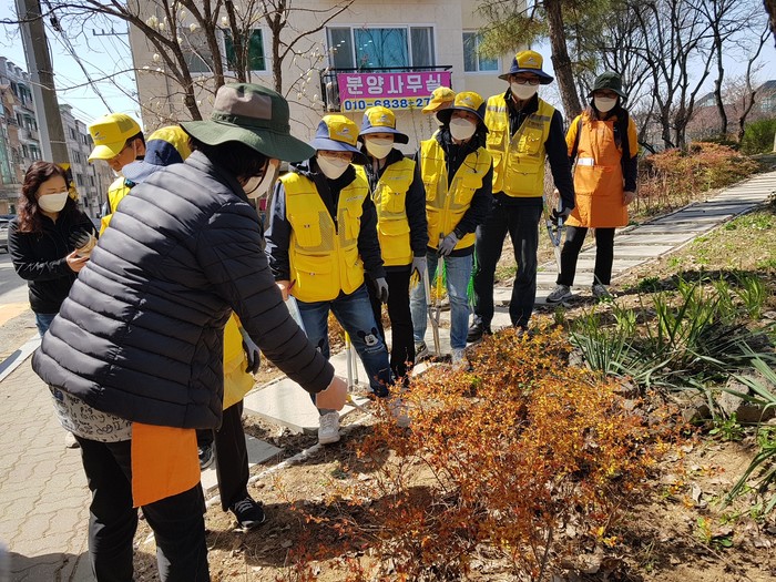 경기 안산시 상록구 사동 주민자치회는 최근 시에서 가장 넓은 마을정원인 사동 마을정원의 식생과 관리법에 대한 마을 정원사 교육을 진행했다. 사진은 이날 참여한 주민들이 마을정원에서 교육을 받고 있는 모습. (사진제공=안산시청)