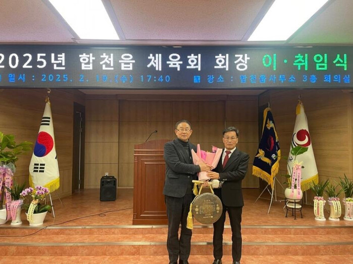 이영수 취임회장은 “합천읍 체육회의 발전을 위해 헌신해주신 송진룡 회장님께 깊이 감사드린다”며 “읍민 화합과 체육 활성화를 위해 최선을 다하겠다”고 말했다.