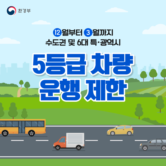 한편 이번 계절관리 기간에는 수도권, 부산, 대구는 물론 광주, 대전, 울산, 세종까지 운행제한지역이 확대 시행된다. 경기 광주시에 등록된 차량이라 하더라도 이 지역을 운행하다 적발될 경우 과태료가 부과된다.