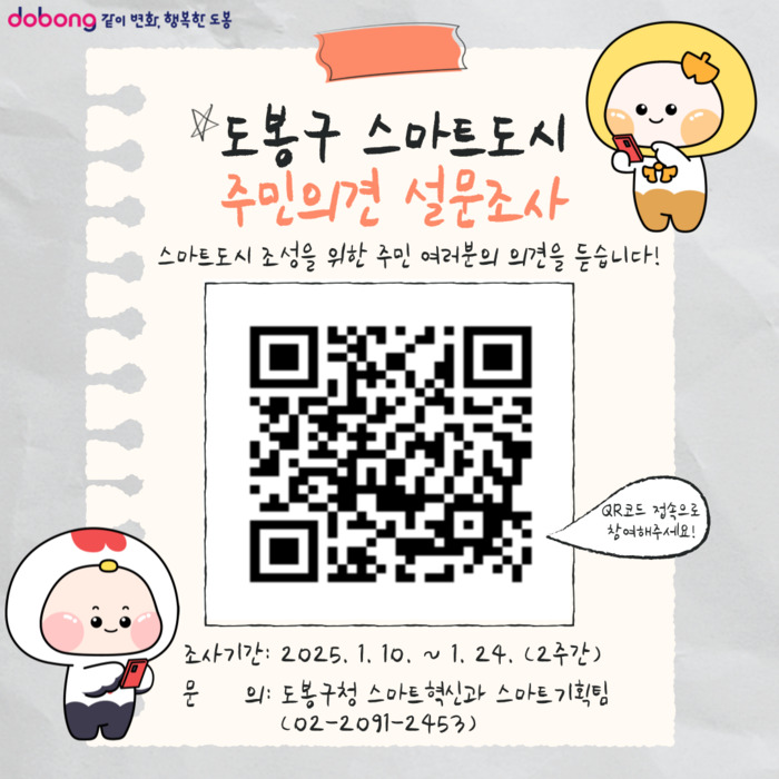 [시민일보 = 문민호 기자] 도봉구(구청장 오언석)가 오는 24일까지 '도봉구 스마트도시 기본계획‘ 수립을 위해 주민 설문조사를 실시한다.