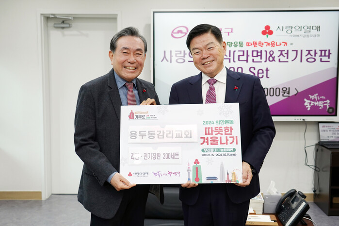 이필형 구청장은 “매서운 한파가 기승을 부리고 있음에도 형편이 어려운 이웃을 위해 귀한 성품과 성금을 기탁해주신 용두동교회와 한국건강관리협회 동부지회에 감사드린다.”며 “취약계층 주민들이 따뜻한 겨울을 보낼 수 있도록 전해주신 성품과 성금을 신속하게 전달하겠다.”고 밝혔다.