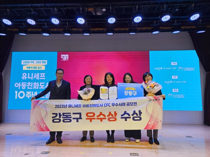 [시민일보 = 이대우 기자] 서울 강동구(구청장 이수희)가 유니세프한국위원회에서 열린 ‘2023년 유니세프 아동친화도시 우수사례 공모전’에서 강동어린이식당으로 우수상을 수상했다.