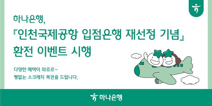 [시민일보 = 여영준 기자] 하나은행은 인천국제공항 입점은행에 재선정된 것을 기념해 2월 한달동안 환전손님을 대상으로 다양한 경품을 제공하는 환전 이벤트를 시행한다고 1일밝혔다.