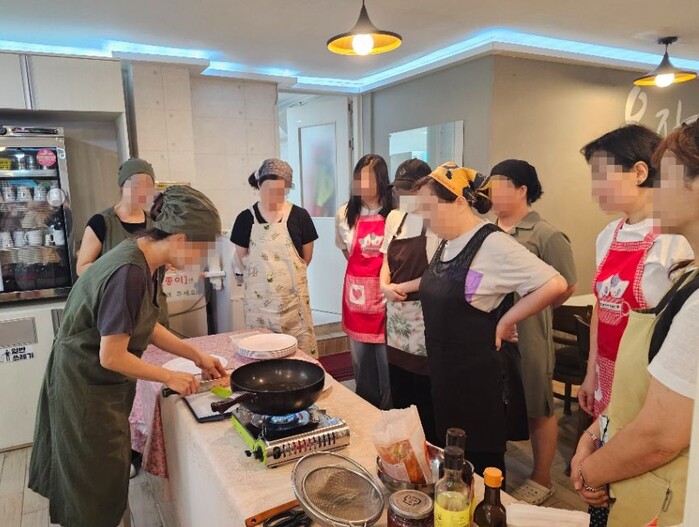 | ▲ ‘한식요리교실’ 참여자들이 요리를 배우고 있다 (사진=은평구청 제공) |