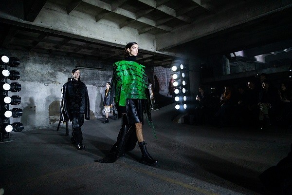 갑옷 같은 이너 피스 위에 입은 아우터들은 과감한 비대칭 커팅과 꾸뛰르 적인 드레이핑, 그리고 패턴메이킹으로 송지오의 미학적 개념인 질서와 무질서의 공존을 보여줬다.