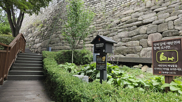 | ▲ 다산성곽길에 추가 설치된 반려견 배변봉투 지급기. (사진=중구청 젝오) |
