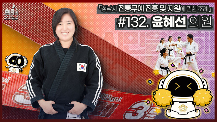 이번에 소개된 조례는 윤혜선 의원 등 13명이 발의한 ‘성남시 전통무예 진흥 및 지원에 관한 조례’이다. 이 조례는 전통무예의 진흥 및 지원을 위해 필요한 사항을 규정함으로써 신체적, 정신적, 교육적 가치를 지닌 우수한 민족 고유 문화유산인 전통무예를 체계적으로 보존·발전시키는 것을 목적으로 한다. 이번 조례는 전통무예의 활용을 통해 시민의 건강증진 및 문화생활 향상을 도모할 것으로 기대된다. 이 조례는 2024년 7월 1일부터 시행 중이다.