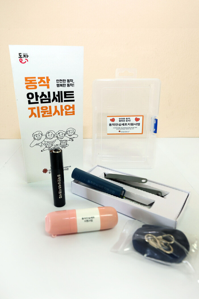 ‘동작안심세트’는 ▲위급 상황에서 경보음이 울리며 현 위치를 전송할 수 있는 휴대용 비상벨 ▲최루액 분사로 즉각적인 대응이 가능한 호신용 스프레이 ▲주소 노출 방지를 위한 송장 지우개 등 3종으로 구성된다.