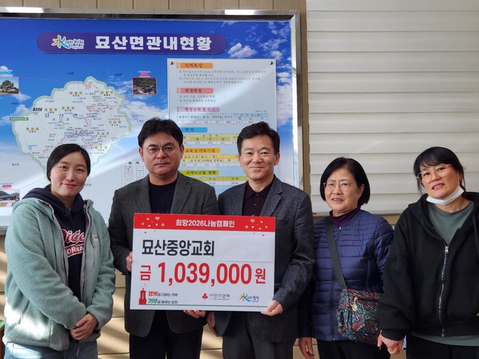 묘산중앙교회 이영기 대표는 “회원들이 모은 성금으로 큰 금액은 아니지만, 이웃을 생각하는 마음만은 넉넉히 담았다”며 “어려운 이웃에 도움이 되길 바라고, 2026년 모두가 웃을 수 있는 한 해가 되었으면 좋겠다”고 밝혔다.
