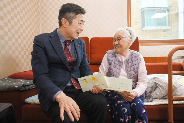 이날 방문한 한 어르신은 “이 나이까지 건강하게 지내고 있는 것도 큰 복이라고 생각하는데, 서초구에서 직접 인사도 와주시고 축하금도 준다고 하니 감사하다”고 말하며 환하게 웃었다.