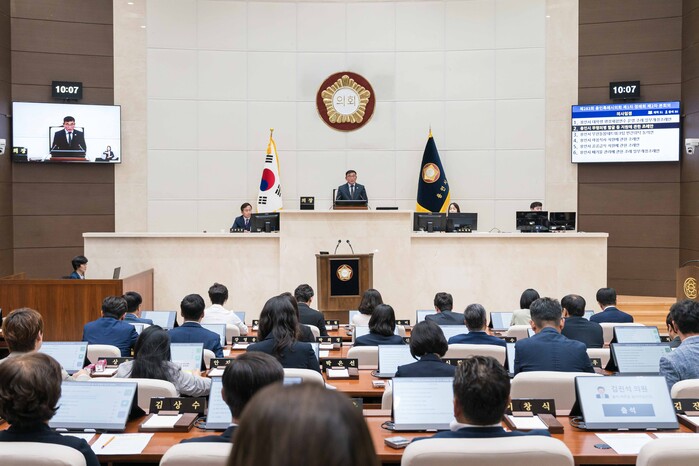 [용인=오왕석 기자] 용인특례시의회(의장 윤원균)는 18일 본회의장에서 제283회 제1차 정례회 제2차 본회의를 열었다.