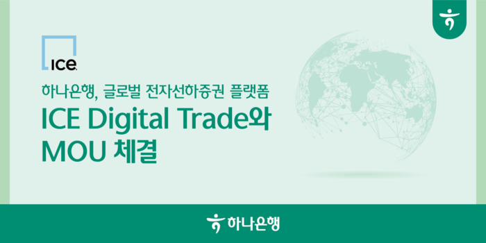 [시민일보 = 여영준 기자] 하나은행은 글로벌 전자선하증권 플랫폼 ICE Digital Trade(구 essDOCS)와 수출입 서류 디지털화 추진을 위한 전략적 업무협약(MOU)를 체결했다고 25일 밝혔다.