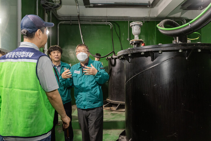 | ▲ 김경호 구청장이 광장빗물펌프장을 점검하는 모습.(사진=광진구청 제공) |