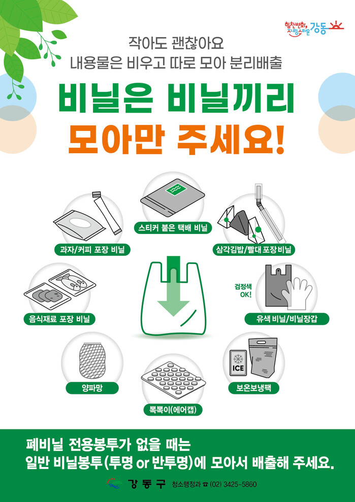 [시민일보 = 이대우 기자] 서울 강동구(구청장 이수희)가 지역내 생활쓰레기 저감을 위해 ‘폐비닐 분리배출’ 홍보에 나섰다.