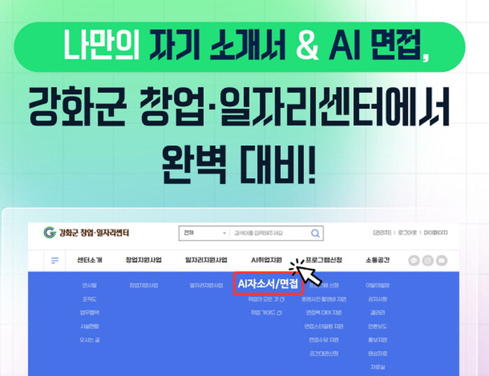 | 강화군 창업·일자리센터 AI 기술을 활용한 취업 지원 서비스 홈페이지 화면 [사진=강화군] |
