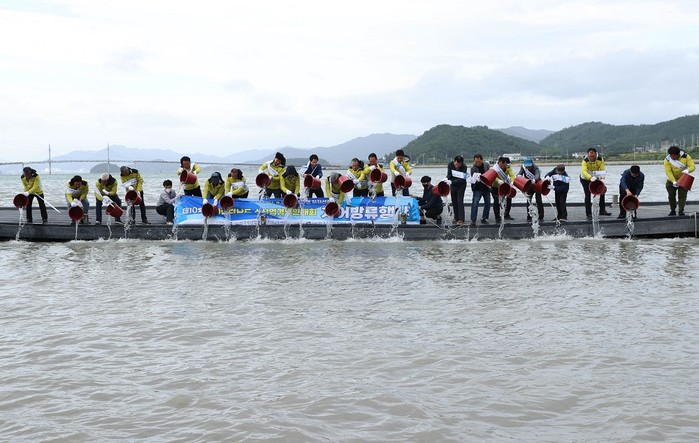 방류행사에 참여한 김용관 강진군연합회장은 “매년 다양한 어패류 종묘 살포를 통해 수산자원조성과 어업인 소득증대가 기대된다.”고 말했다