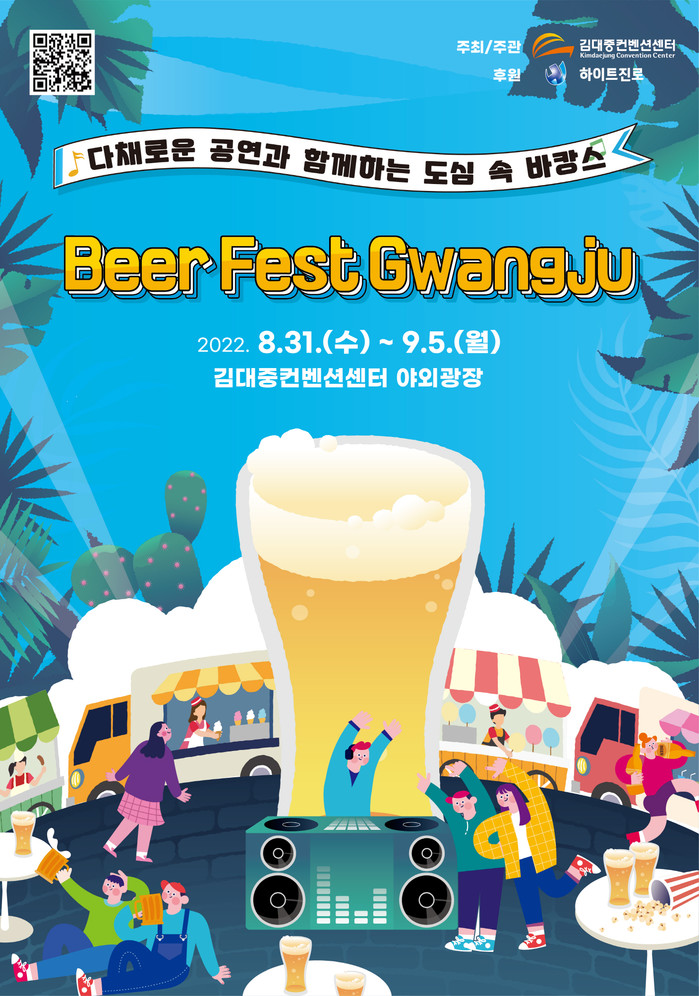 김대중컨벤션센터가 오는 31일부터 다음달 5일까지 김대중컨벤션센터 야외광장에서 “우리 다시 Together! 걱정을 Beer Brewer(브루어:맥주 양조업자)”라는 주제로 ‘2022 Beer Fest Gwangju(광주 맥주축제)’를 연다.