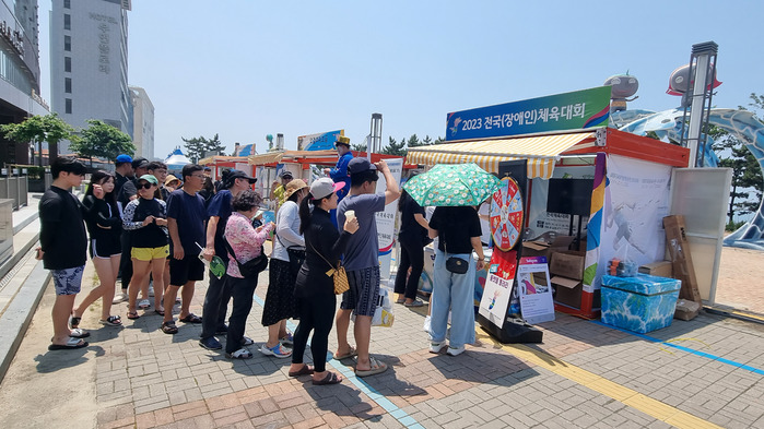 특히 전국체전 홍보영상 송출, 체전 상징물을 활용한 현수막과 배너, 백드롭 게시 등을 통해 관람객의 이목을 끌었다. 행사장 분위기에 맞는 물놀이 튜브, 수영 방수가방, 수건, 부채 등 풍성한 여름나기 체전 홍보 물품을 증정해 큰 호응을 얻었다.
