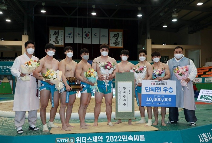 대회 마지막 날 단체전은 그야말로 영암군민속씨름단을 주인공으로 드라마를 썼다고 해도 과언이 아니었다. 예선 첫 게임부터 대회 기간 동안 태백, 금강급 형제 장사를 배출한 우승 후보 수원특례시청을 만나 결승전을 방불케 한 접전 끝에 4:3으로 진땀승을 거뒀다. 이후 8강에서 연수구청을 4:2, 준결승에서는 21년도 왕중왕전 최강팀 태안군청을 4:3으로 역전승을 거둬 결승에 올랐다.