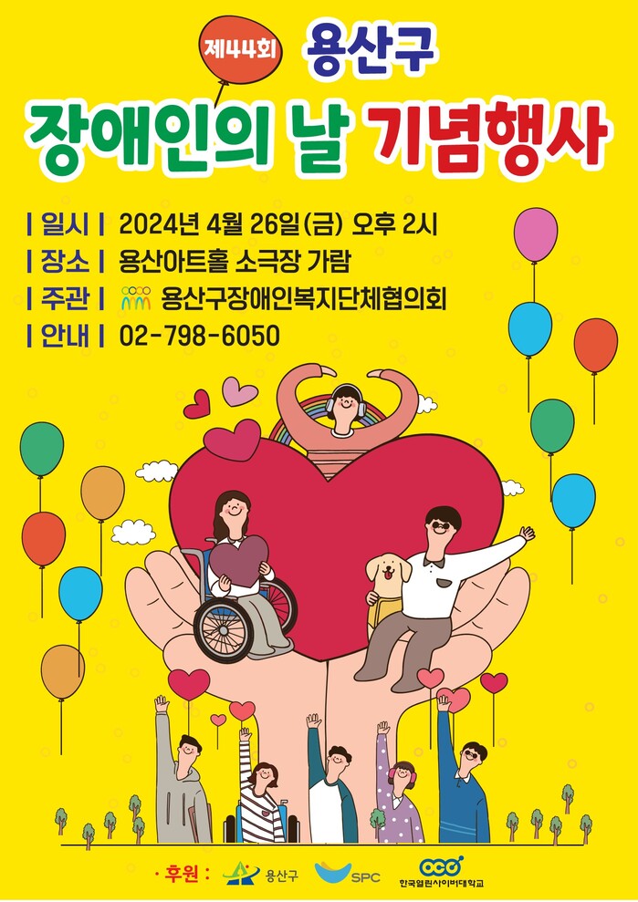구에 따르면 이번 기념행사는 ‘용산구 장애인복지단체협의회’가 주최하고 용산구, SPC, 한국열린사이버대학이 지원한다.