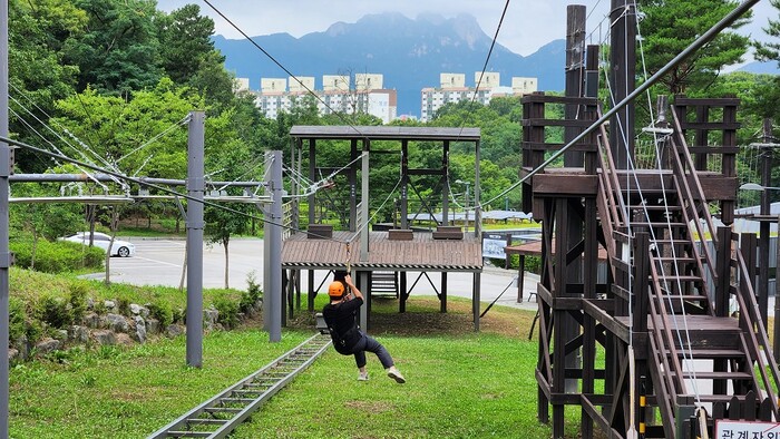 | ▲ 짚라인을 체험하고 있는 모습. (사진 = 노원구청 제공) |