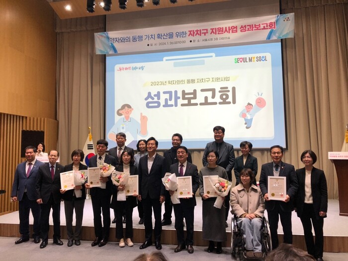[시민일보 = 이대우 기자] 서울 종로구(구청장 정문헌)가 최근 서울시청에서 열린 '2023년 약자와의 동행 가치 확산을 위한 자치구 지원사업 성과보고회'에서 우수구로 선정됐다.