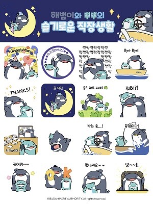 ‘해범이와 뿌뿌의 슬기로운 직장생활’이모티콘은 카카오톡에서 ‘부산항만공사’채널을 신규 추가하면 내려받을 수 있으며, 30일 동안 무료로 사용할 수 있다.