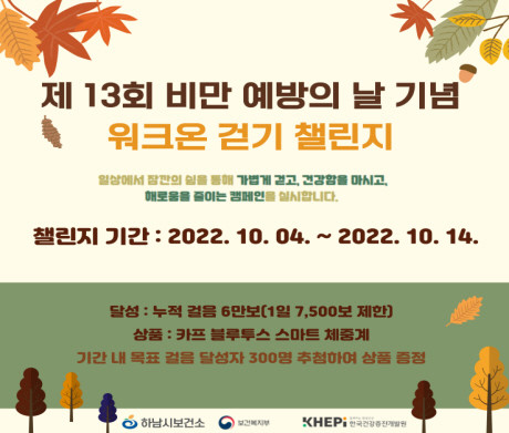 [하남=전용원 기자] 경기 하남시는 ‘제13회 비만예방의 날’을 기념해 걷기 챌린지를 실시한다고 4일 밝혔다.