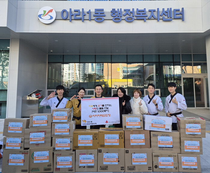이지영 아라1동장은 “아이들을 비롯하여 지역사회를 위해 나눔문화에 앞장서주신 태권도장에 감사드린다”라며 “전달받은 라면은 관내 도움이 필요한 이웃에게 전달될 수 있도록 하겠다”라고 감사 인사를 전했다.