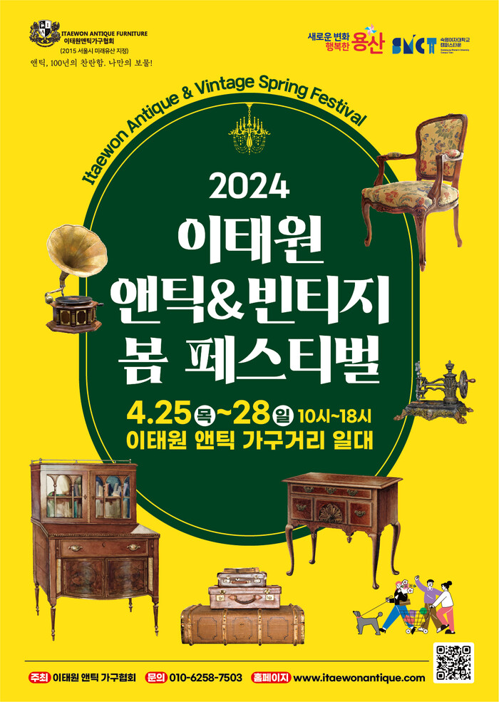 [시민일보 = 여영준 기자] 용산구(구청장 박희영)는 이태원 앤틱가구거리에서 오는 25~28일 4일간 오전 10시~오후 6시 열리는 ‘앤틱&빈티지 봄 페스티벌’을 후원한다고 밝혔다.