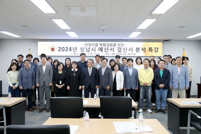 [성남=오왕석 기자] 성남시의회(의장 이덕수)는 9일 오후 의회 4층 세미나실에서 성남시의회 의원과 직원을 대상으로 의정 지원 역량 강화를 위한‘2024년 성남시 예산서·결산서 분석 특강’을 실시하였다.