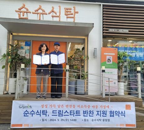 [시민일보 = 이대우 기자] 서울 은평구(구청장 김미경)는 최근 드림스타트와 역촌동에 소재한 순수식탁 응암점이 가정 반찬 지원 협약을 체결했다고 밝혔다.