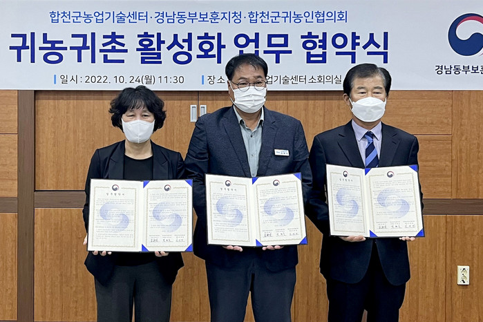 김해식 농업기술센터소장은 인사말을 통해 “이번 협약으로 귀농귀촌 유치 업무가 더욱 활성화되어 합천군 인구 증가에도 큰 역할이 기대되는 만큼 효율적인 업무 추진을 위해 최선의 지원을 하겠다”고 밝혔다.