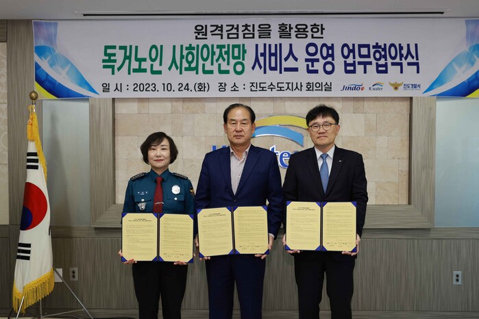 이날 협약식은 군과 진도경찰서, 진도수도지사 3개 기관이 참여해 원격검침을 활용한 홀몸노인 사회안전망 서비스 운영 등을 구축하기 위해 마련됐다.