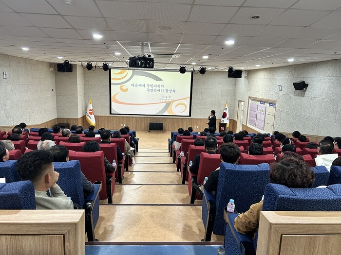 먼저 이용연 마을자치연구소 대표는 강의를 통해 “주민자치는 마을에 대한 열정, 솔선수범, 희생과 봉사의 주민참여에서 시작한다”며 주민참여 활성화를 강조했다.