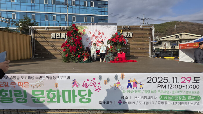 [용인=오왕석 기자] 용인특례시(시장 이상일)는 11월 29일 처인구 중앙동 용인중앙시장 금복교 주변에서 ‘도심 속 작은 힐링 문화마당’ 행사를 개최했다고 3일 밝혔다.