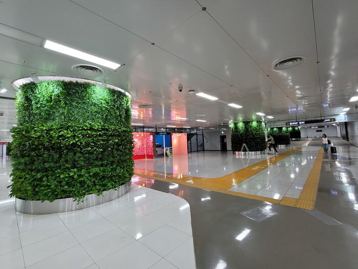시는 대합실 바닥에 초록색 인조 잔디와 걸터앉을 수 있는 직육면체 모양 의자를 설치해 시민들이 편히 쉬어갈 수 있는 공간을 만들었다.