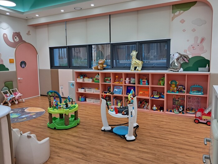 구에 따르면 공동육아나눔터는 67㎡ 규모로 광진구 평생학습센터 1층에 위치하며 놀이공간, 수유실로 구성됐다. 안전매트, 공기청정기 등 편의시설을 갖추고 쾌적한 환경에서 놀이기구와 장난감, 도서 등을 편안하고 자유롭게 이용할 수 있다.