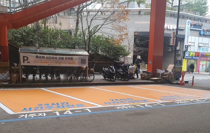 | ▲ 옥수역 1번 출구 인근 포장마차 철거 후 주차장이 조성된 모습. (사진=성동구청 제공) |